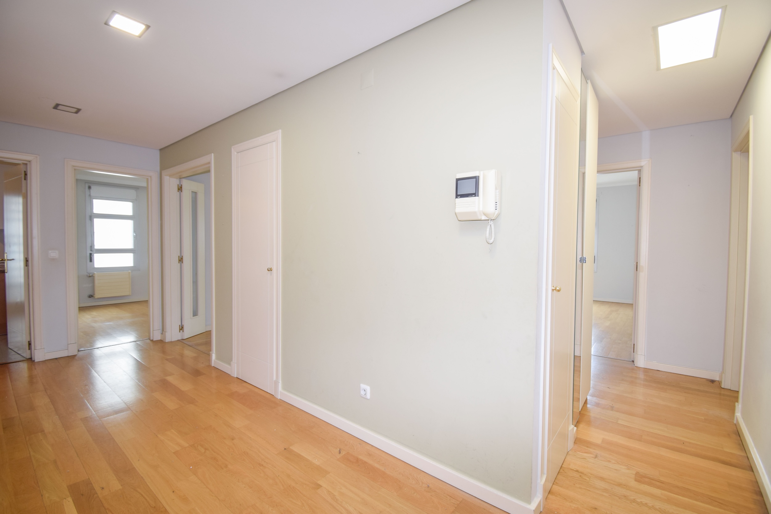 O apartamento conta com dois quartos, sendo um deles em suite, ambos com roupeiros embutidos que garantem espaço e organização. As duas casas de banho completas, equipadas com banheira, e a casa de banho social proporcionam conforto para toda a família. Uma divisão extra é ideal para criar uma sala de jantar, um escritório ou uma zona de estudo.